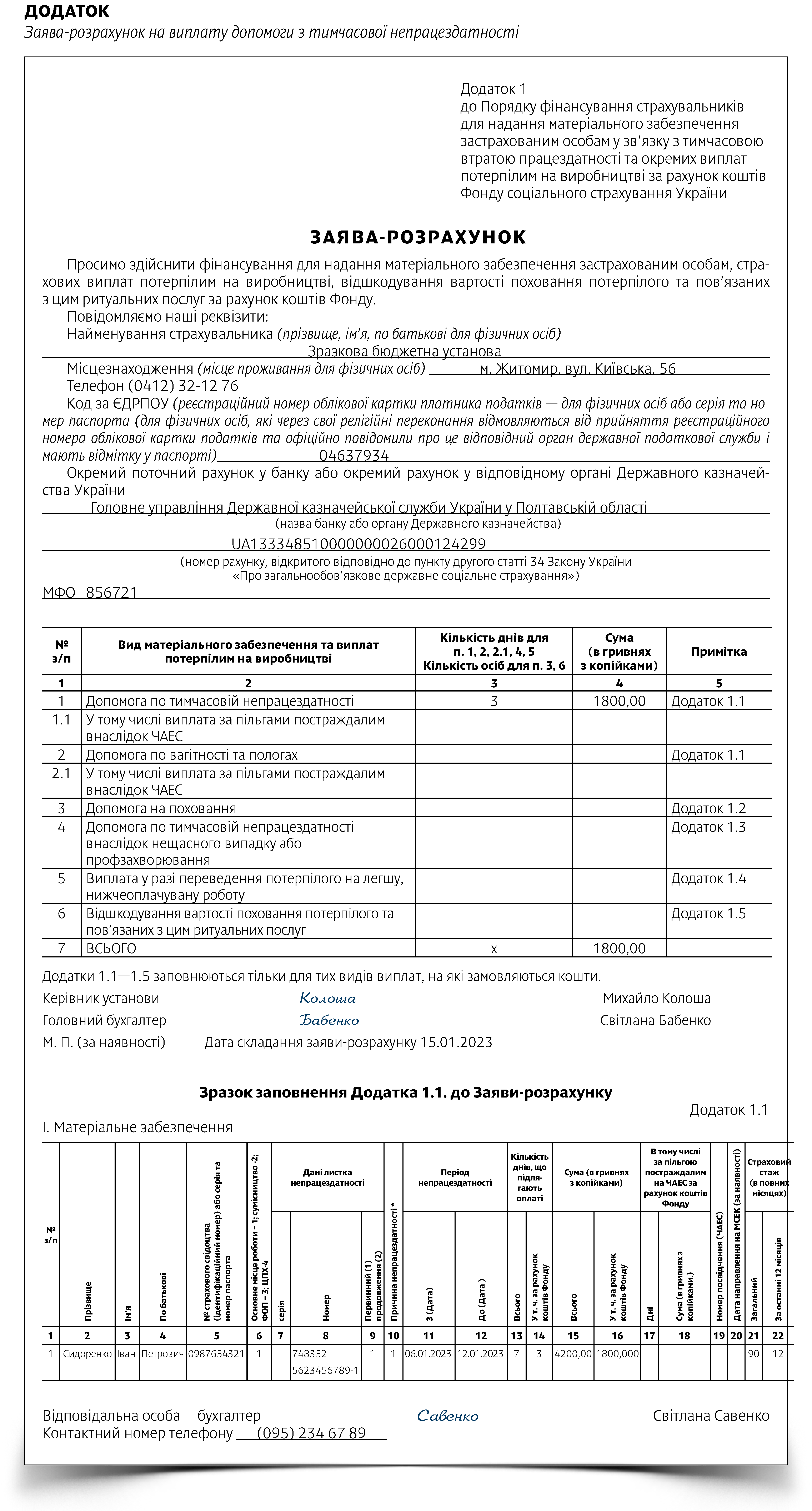 Заява-розрахунок на виплату допомоги з тимчасової непрацездатності